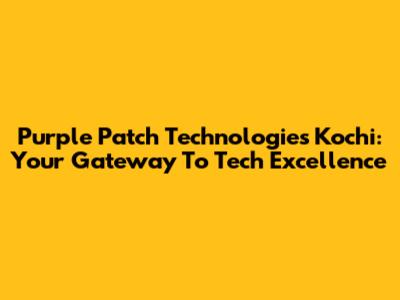Purple Patch Technologies Kochi: Your Gateway To Tech Excellence